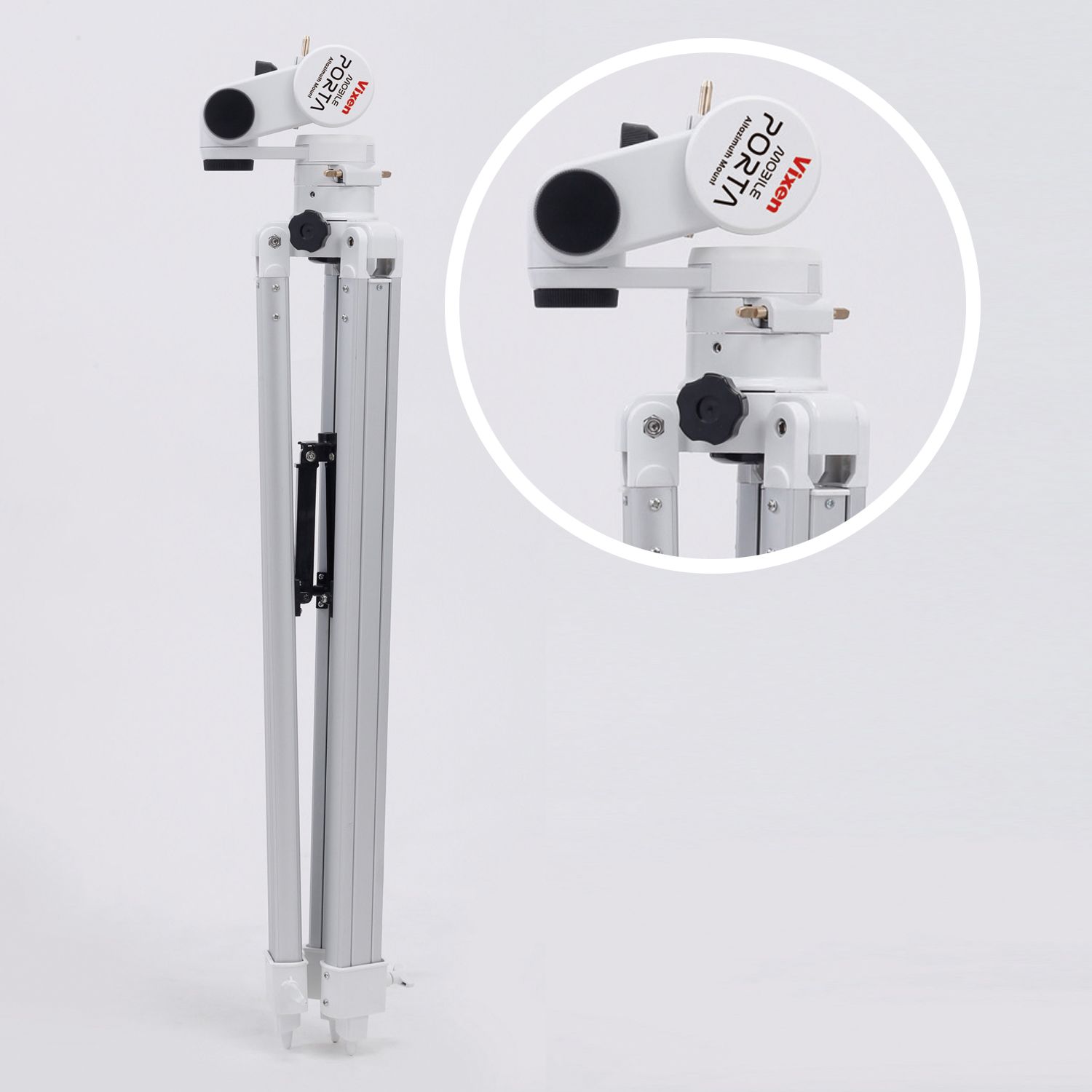 Foldable mount headThe mount head of the MOBILE PORTA can be folded for convenient strage or transport. The mount head is detachable from the tripod. The tube and Tripod Bag 100, sold separately, is the perfect bag for storage and transport of your MOBILE PORTA. An optical tube cannot be put together in the bag.